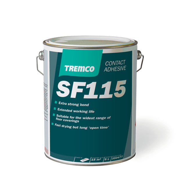 The Tremco SF115 5ltr Neutral is a one part, modified elastomer contact adhesive for use with rubber and PVC.