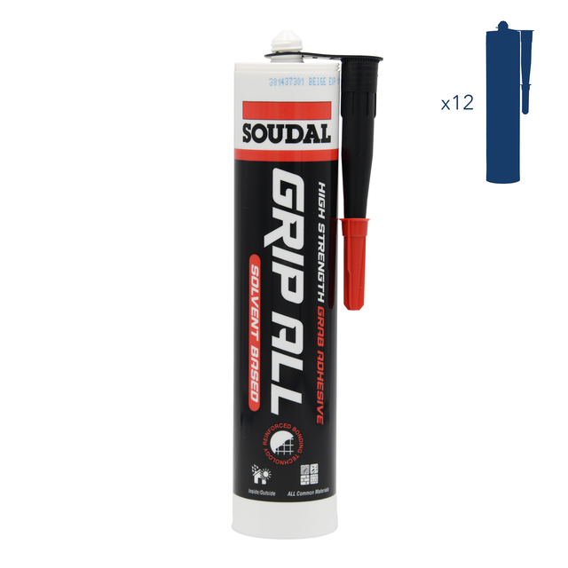 The Soudal Grip All is a solvent based, ultra-strong gap filling grab adhesive using Soudal’s unique Reinforced Bonding Technology. The high performance adhesive replaces the need for mechanical fixings (screws and nails).