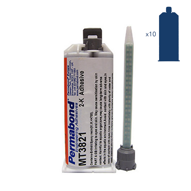 PERMABOND MT3821 is a 2:1, two-part, modified epoxy adhesive designed for sealing and bonding. It has excellent adhesion to Nylon, ABS, Polycarbonate and other plastics as well as a variety of different metals. When cured, this adhesive is soft and flexible.