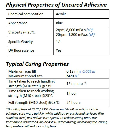 Permabond A130 WRAS Approved Threadlocker 50ml